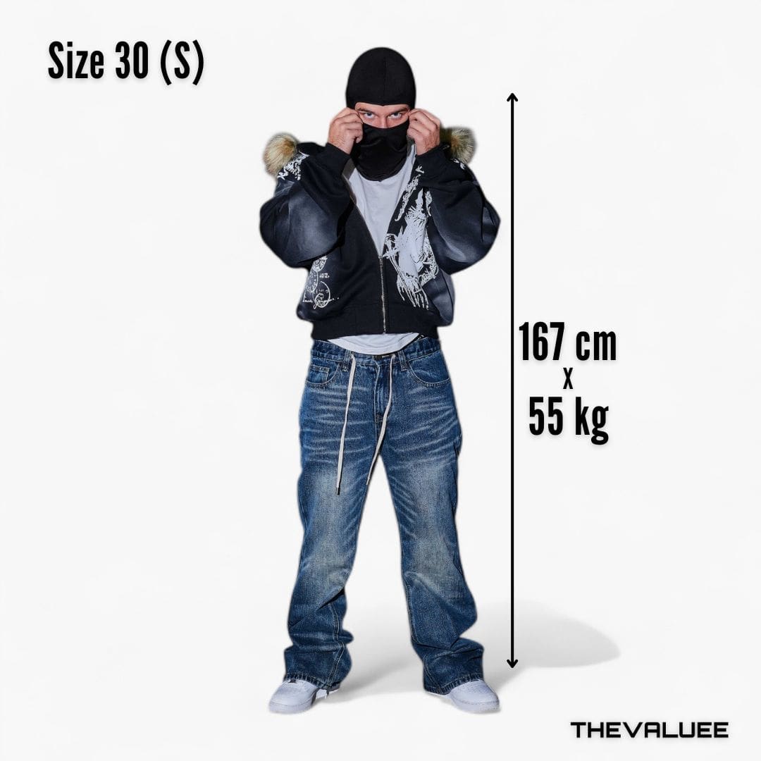 I nostri jeans sono realizzati in denim di cotone, caratterizzato da una texture robusta e resistente che garantisce la durata del capo nel tempo. Il tessuto mantiene la sua struttura autentica, offrendo un aspetto deciso e di qualità.