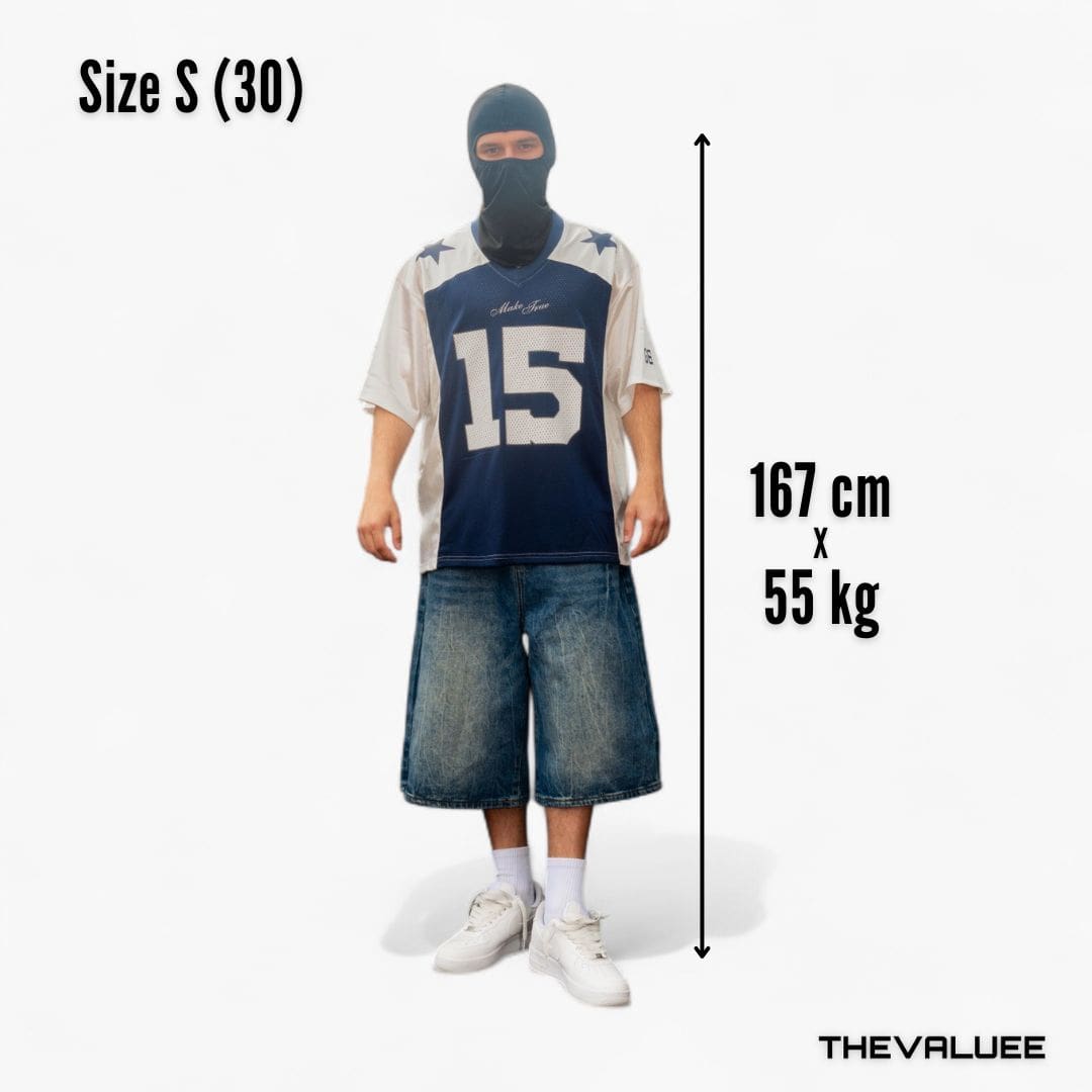Our TikTok model is 167 cm tall, weighs 55 kg and wears size S (30) of the Thunder Shorts Jeans item.