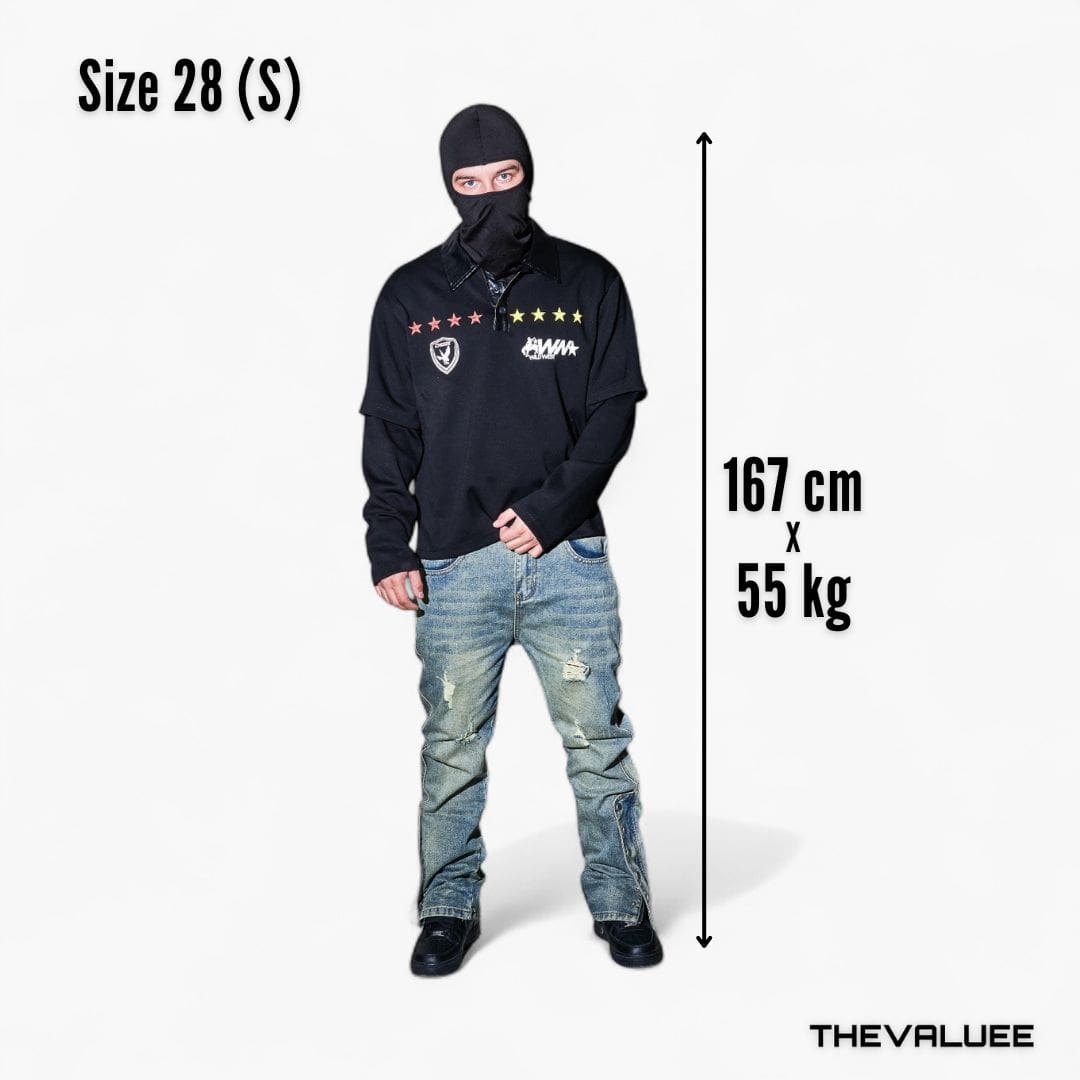 I nostri jeans sono realizzati in denim di cotone, caratterizzato da una texture robusta e resistente che garantisce la durata del capo nel tempo. Il tessuto mantiene la sua struttura autentica, offrendo un aspetto deciso e di qualità.