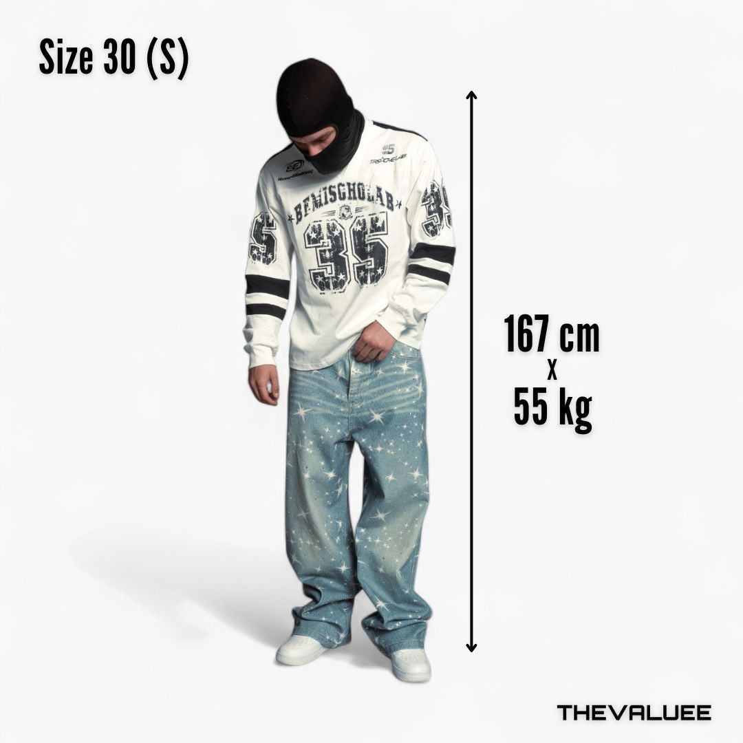 Il nostro modello su TikTok è alto 167 cm, pesa 55 kg e del modello Starry Baggy Jeans indossa la taglia 30 (S).