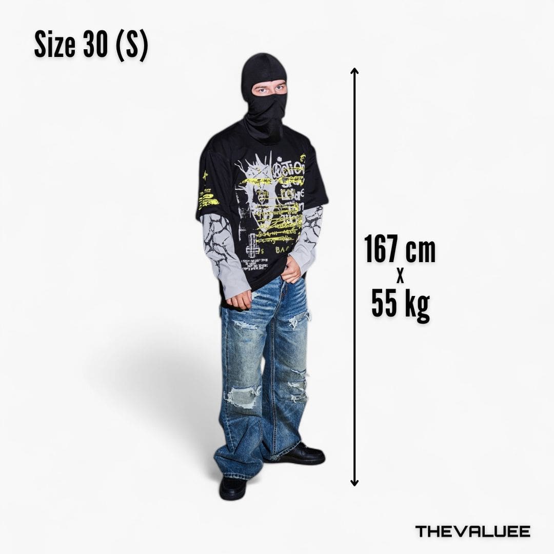 I nostri jeans sono realizzati in denim di cotone, caratterizzato da una texture robusta e resistente che garantisce la durata del capo nel tempo. Il tessuto mantiene la sua struttura autentica, offrendo un aspetto deciso e di qualità.