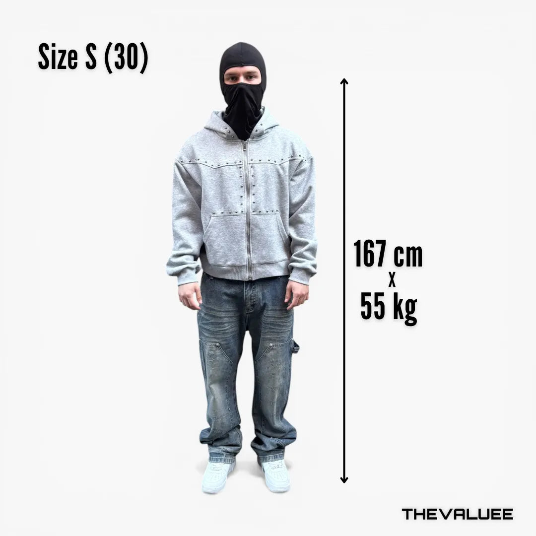 I nostri jeans sono realizzati in denim di cotone, caratterizzato da una texture robusta e resistente che garantisce la durata del capo nel tempo. Il tessuto mantiene la sua struttura autentica, offrendo un aspetto deciso e di qualità.