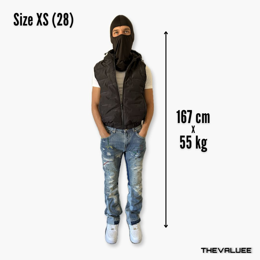 I nostri jeans sono realizzati in denim di cotone, caratterizzato da una texture robusta e resistente che garantisce la durata del capo nel tempo. Il tessuto mantiene la sua struttura autentica, offrendo un aspetto deciso e di qualità.