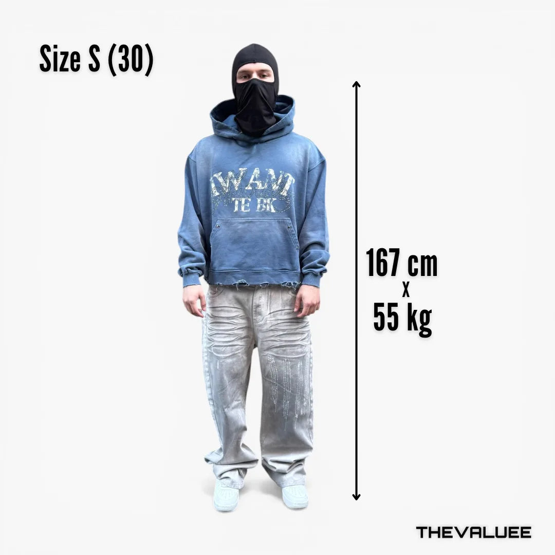 I nostri jeans sono realizzati in denim di cotone, caratterizzato da una texture robusta e resistente che garantisce la durata del capo nel tempo. Il tessuto mantiene la sua struttura autentica, offrendo un aspetto deciso e di qualità.