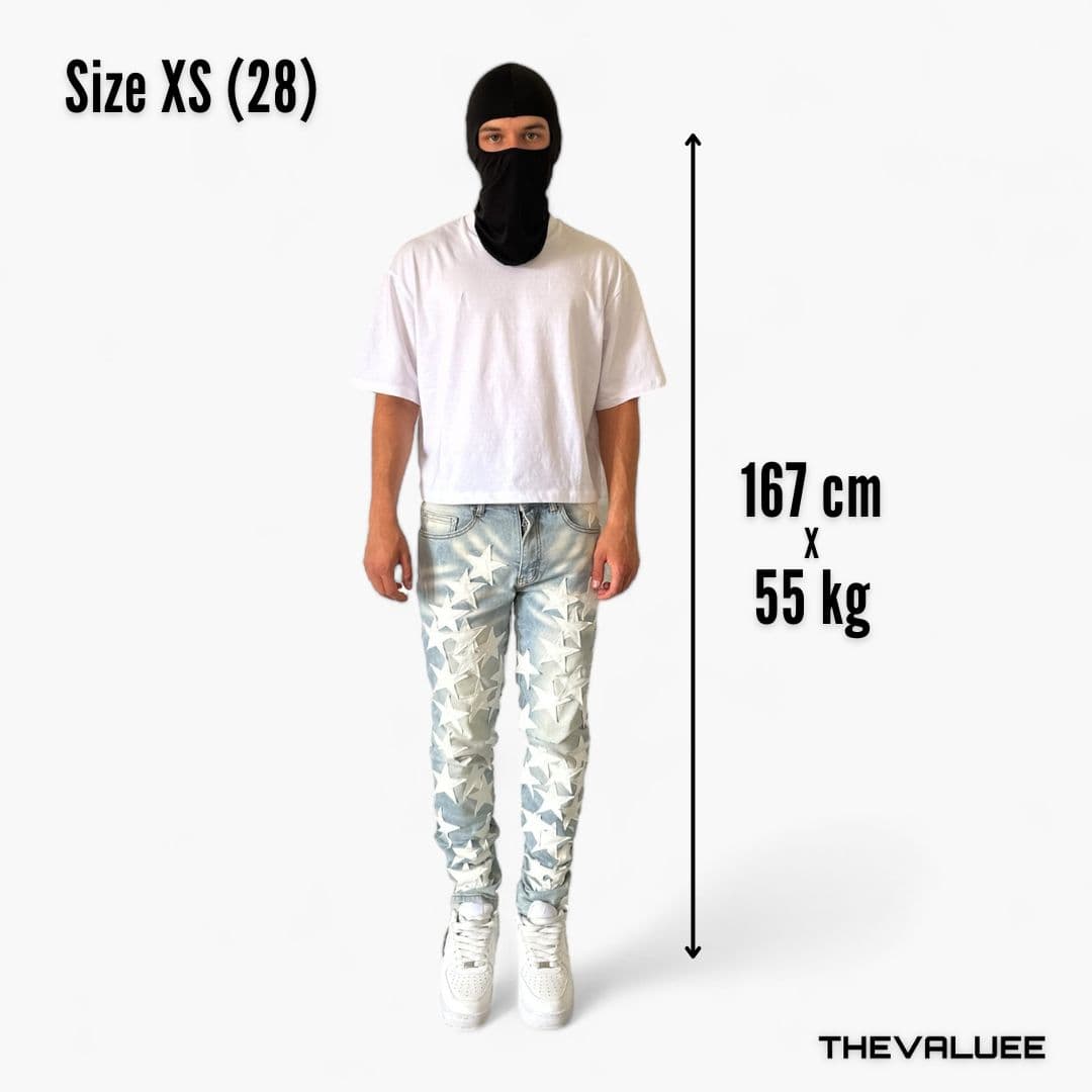Il nostro modello su TikTok è alto 167 cm, pesa 55 kg e indossa la taglia XS (28) di tutti i modelli della collezione Slim Fit.